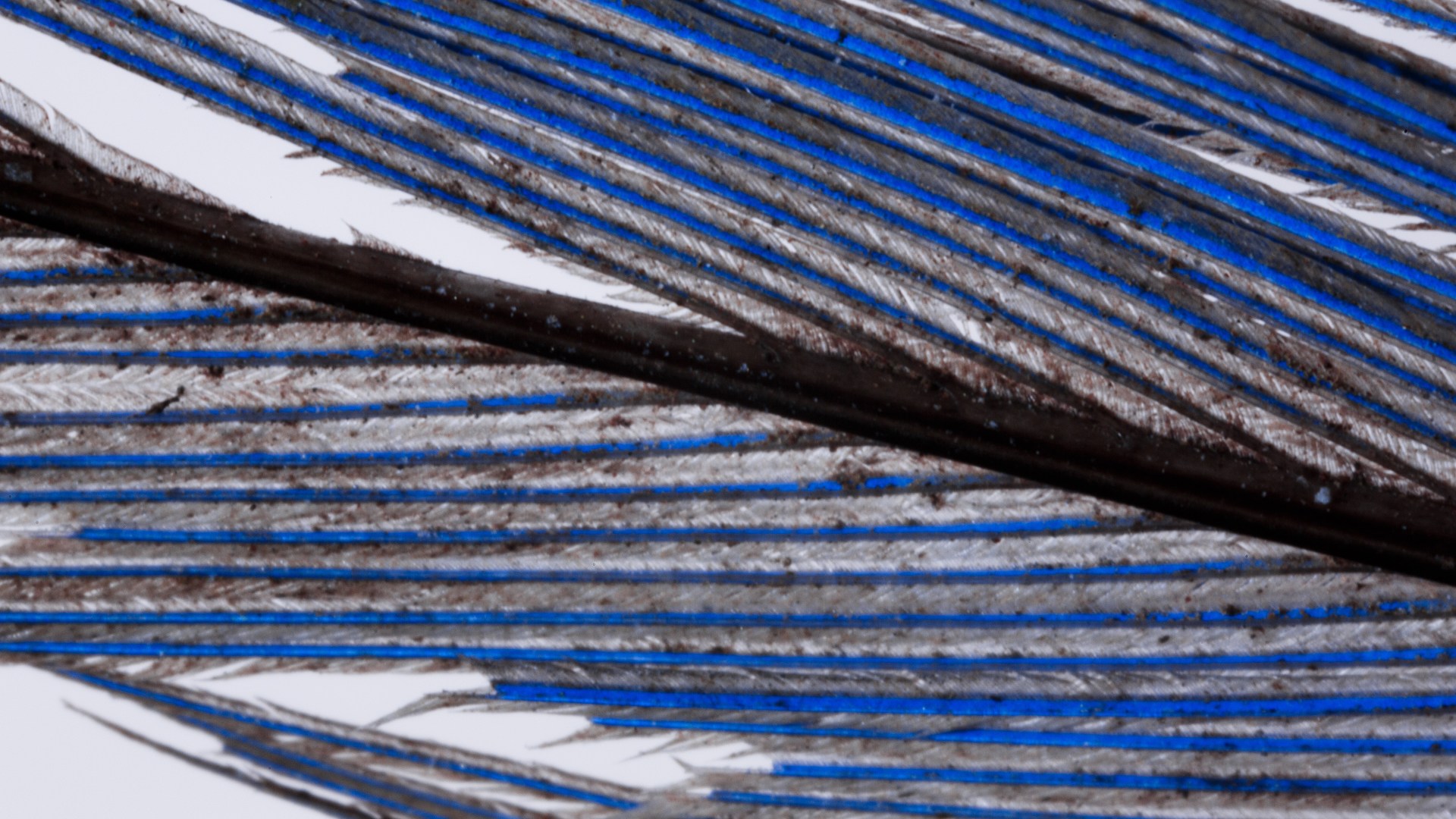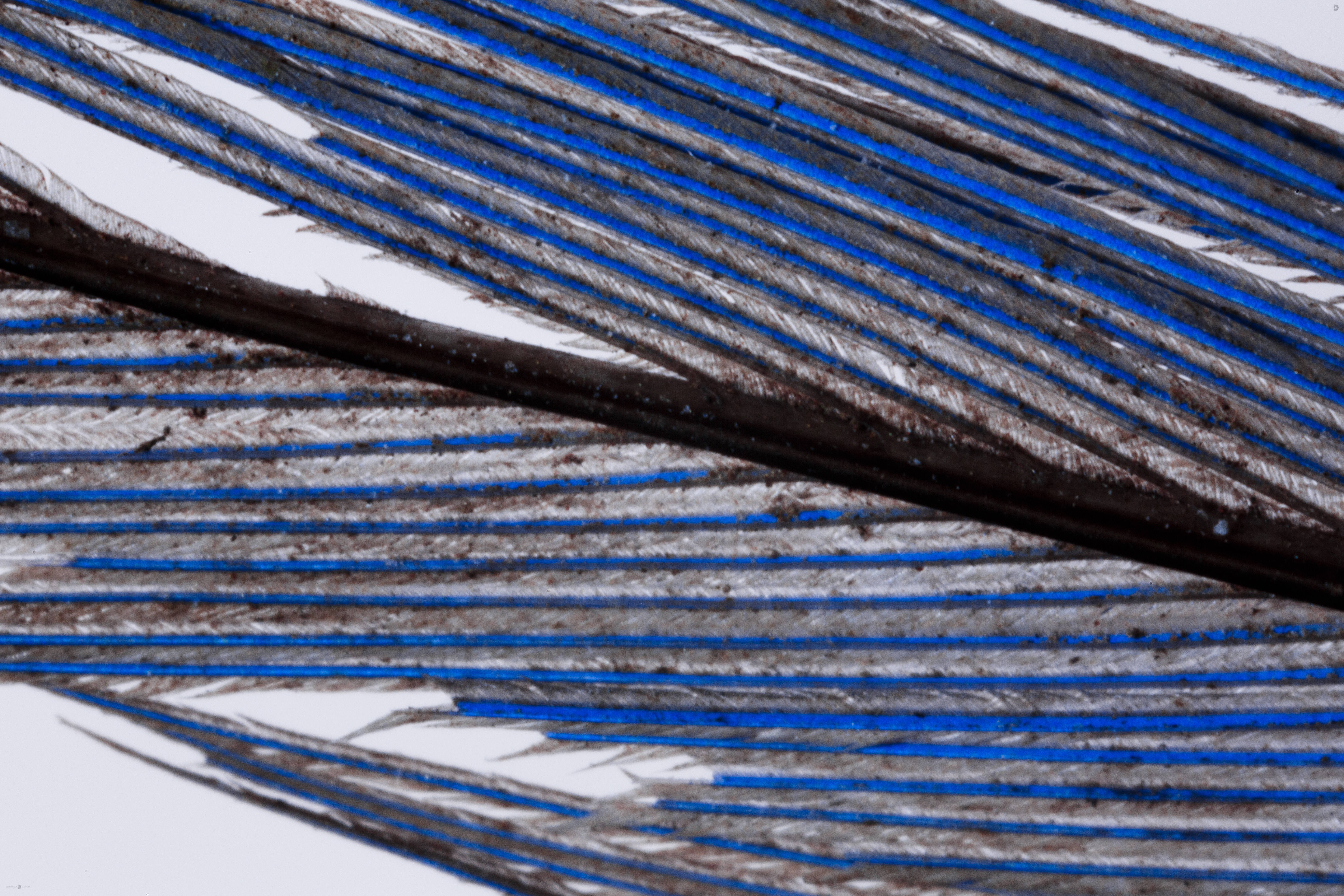 Day 263 of the 365 to 40 project. This is absolutely not the prettiest photo you are going to see but I find it kind of fascinating. I found a small, ratty and weathered feather in the yard. Initially I didn’t think much of it until a chance flick of it under a bright LED caused the brigt blue bands to leap out. A little expermiting and by using a bright backlit combined with a strong angled light the bands are really vivid.